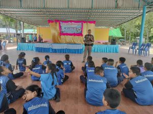 ร.ต.ท.วิวรรธน์ วานิชชญกาญจน์ รอง สว.(ป.)ฯ สายตรวจจราจร จัดทำโครงการครู 5 นาที อบรมให้ความรู้แก่เด็กนักเรียนในหัวข้อ ความรู้เกี่ยวกับกฎหมายจราจรและ ความรู้ด้านภัยไซเบอร์ ที่โรงเรียนวพังตรุราษฎร์รังสรรค์