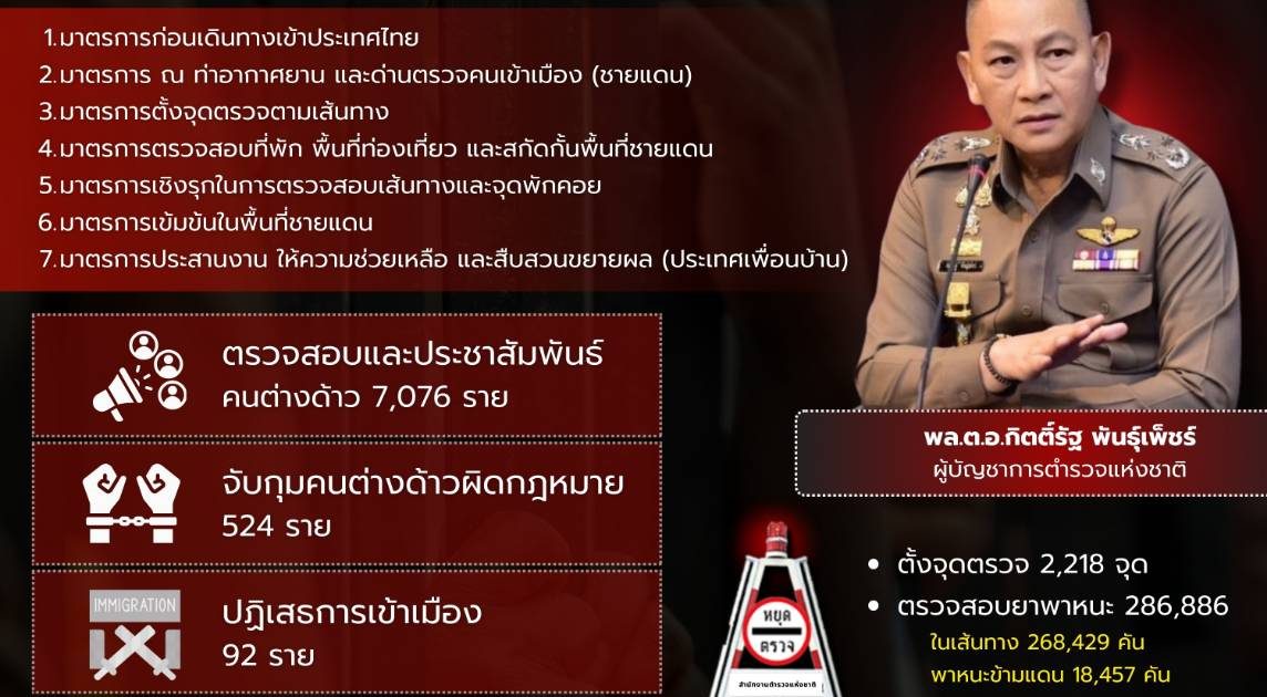 ผู้บัญชาการตำรวจแห่งชาติ สรุปผลการปฏิบัติ 7 มาตรการเข้มข้น หลังขีดเส้นตาย 7 วัน ปฏิบัติการเชิงรุกตั้งแต่ก่อนเข้าประเทศ เอ็กซเรย์ทุกพื้นที่ สกัดกั้นชายแดน ปรับแผนรองรับ