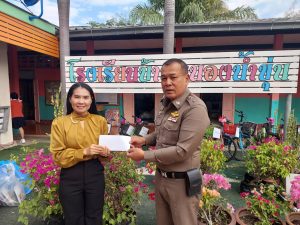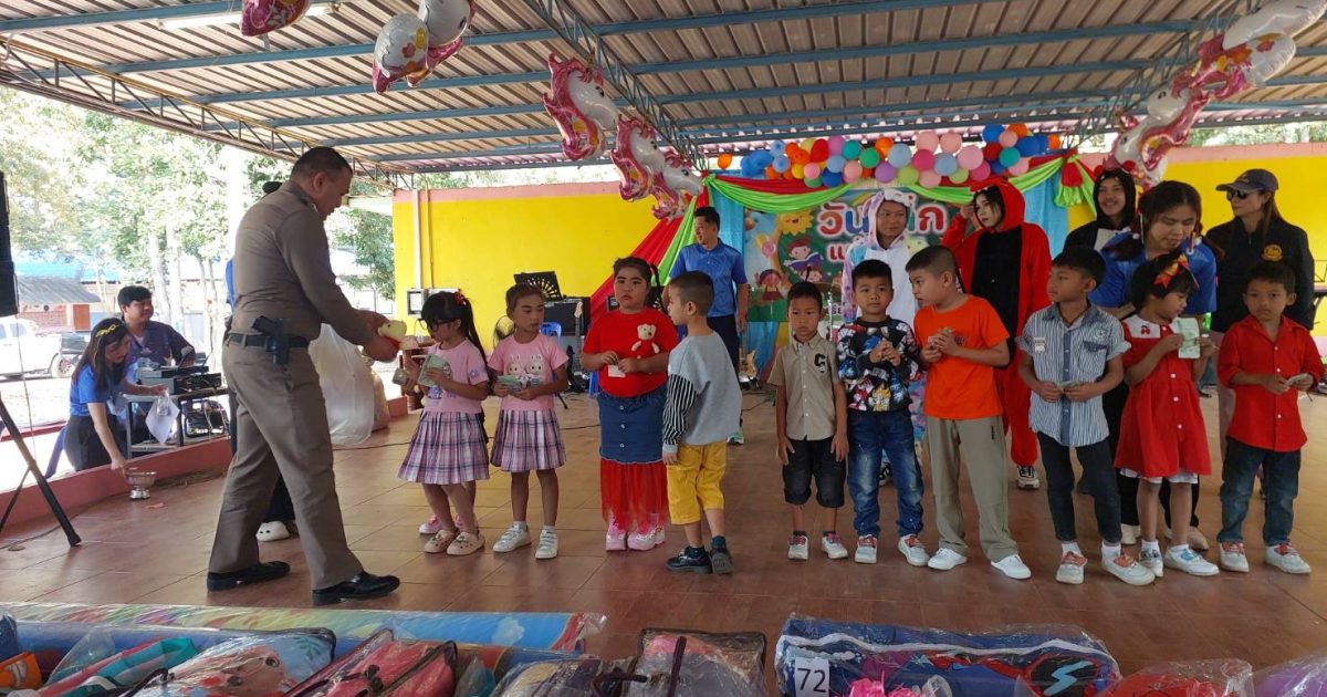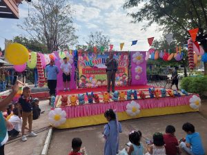พร้อมข้าราชตำรวจสภ.สำรอง ร่วมงานวันเด็กโรงเรียนในเขตพื้นที่ และมอบทุนการศึกษาและของรางวัลให้เเก่นักเรียน