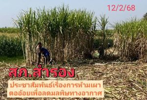 งดการเผาอ้อยโดยเด็ดขาด! การเผาอ้อยส่งผลให้เกิดฝุ่นละออง PM 2.5 ซึ่งอันตรายต่อสุขภาพ และหากฝ่าฝืนมีความผิดตามกฎหมาย