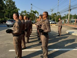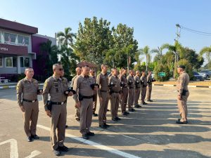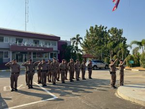 พร้อมด้วยข้าราชการตำรวจ สภ.สำรอง เข้าเเถว เคารพธงชาติ ตรวจทรงผม เครื่องแต่งกาย พร้อมทั้ง ประชุมบริหาร สภ.สำรองประจำสัปดาห์