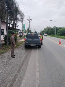 ออกตรวจบริเวณหน้าที่ทำการสายตรวจสระเศรษฐี ต.บ้านใหม่ อ.ท่าม่วง จ.กาญจนบุรี