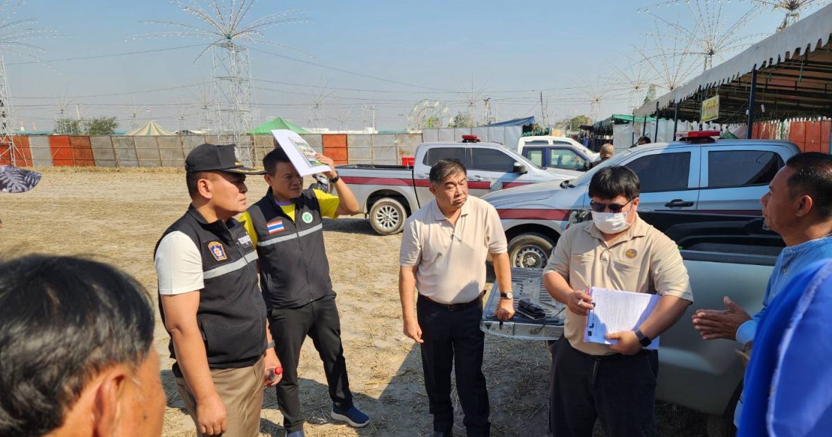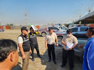ได้ร่วมกันออกตรวจ ความเรียบร้อย ภายในสนามการแข่งขันวัวลาน ตำบลบ้านใหม่ อำเภอท่าม่วง จังหวัดกาญจนบุรี งาน คอนเสิร์ตรับลมหนาว บ้านไร่มนศิริพัชร์