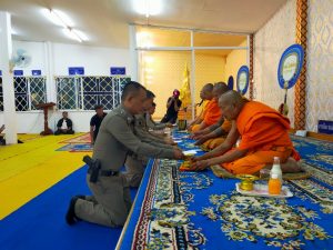 ร.ต.อ.สัญญา เพิ่มพูล รอง สว.(ป.) สภ.สำรอง พร้อมด้วยข้าราชการตำรวจ สภ.สำรอง เป็นเจ้าภาพสวดพระอภิธรรมศพ คุณพ่อแสวง พรามพิทักษ์ อายุ 80 ปี บิดาของ ร.ต.อ.พยนต์ พรามพิทักษ์ รอง สว.(ป.) สภ.สำรอง