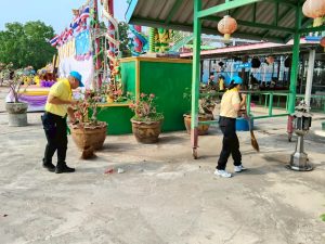 ร่วมกันทำความสะอาด กวาดและปรับภูมิทัศน์บริเวณ วัดหนองสองห้องผาสุการาม เพื่อถวายเป็นพระราชกุศล เนื่องในวันคล้ายวันพระราชสมภพ สมเด็จพระกนิษฐาธิราชเจ้า กรมสมเด็จพระเทพรัตนราชสุดาฯ สยามบรมราชกุมารี โดยมี นายนพพล สุกิจปาณีนิจ นายอำเภอท่าม่วง เป็นประธานเปิดกิจกรรม
