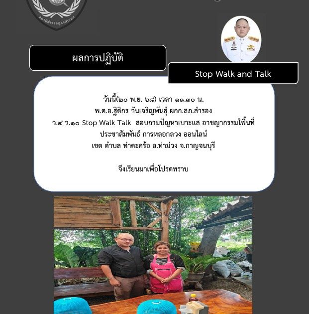 เบาะแส อาชญากรรมในพื้นที่ ประชาสัมพันธ์ การหลอกลวง ออนไลน์ เขต ตำบล ท่าตะคร้อ อ.ท่าม่วง จ.กาญจนบุรี