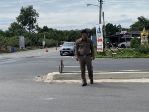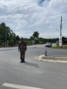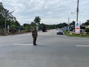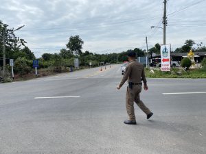 พร้อมด้วยสายตรวจจราจร สำรวจจุดบริเวณที่เกิดอุบัติเหตุบ่อย เพื่อหาสาเหตุและแก้ไขปัญหาการจราจร บริเวณทางแยก สนามกอล์ฟเอเวอร์กรีน ม.10 ต.หนองตากยา อ.ท่าม่วง จ. กาญจนบุรี
