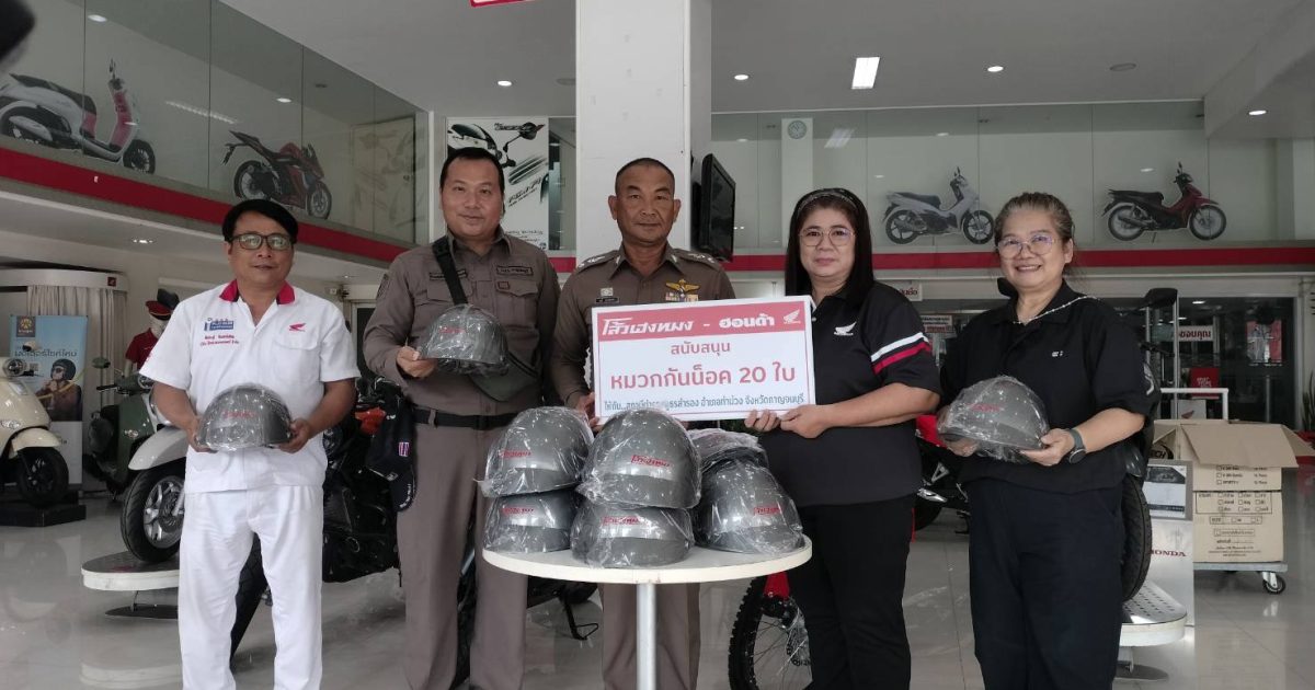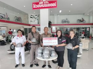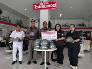 ร.ต.อ.กมลสันต์ สินสืบผล,ส.ต.ท.คชา คชสิทธิ์ รับมอบหมวกกันน็อคจากบริษัทโล้ว เฮง หมง จำนวน 20 ใบ