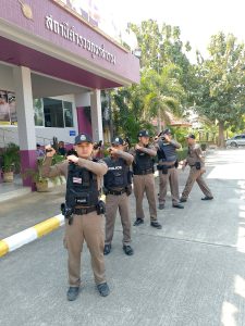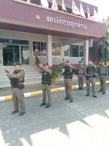 ทำการฝึกทบทวนยุทธวิธีตำรวจให้กับสายตรวจ