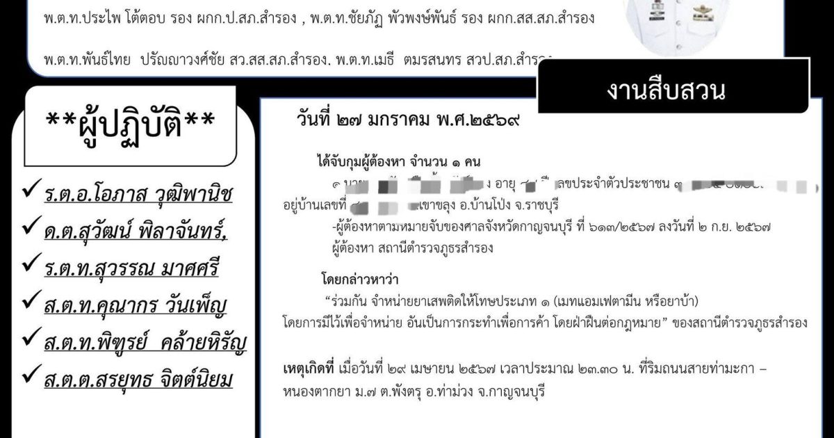 ผู้ต้องหาตามหมายจับของศาลจังหวัดกาญจนบุรี