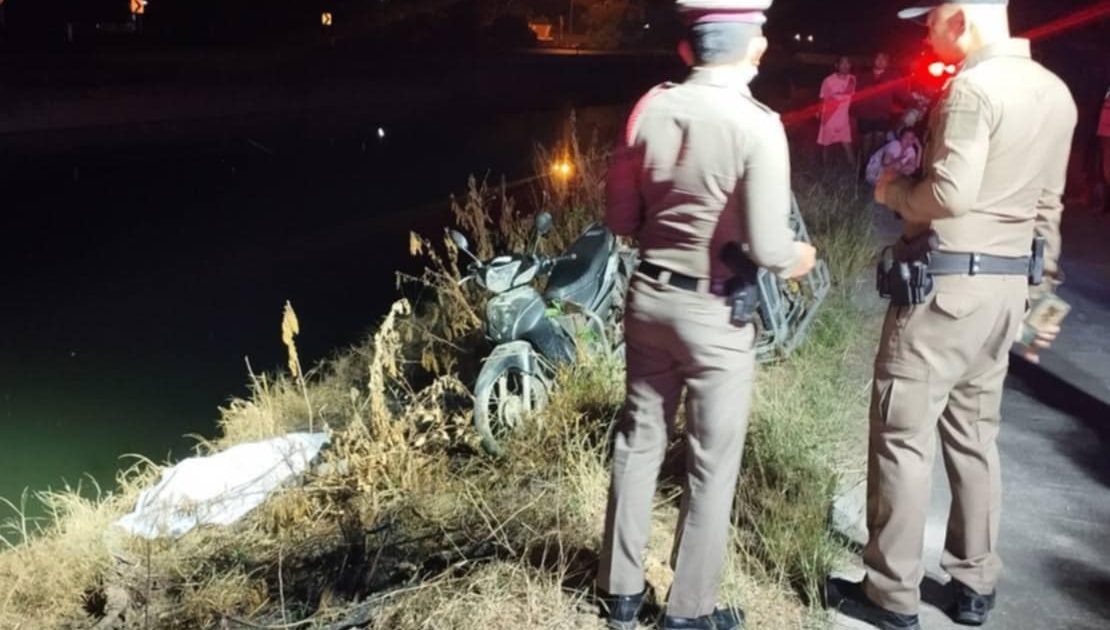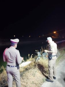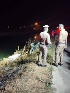 ร.ต.อ.วันชัย พุฒเอก เวรสอบสวนออกตรวจที่เกิดเหตุ อุบัติเหตุ ริมถนนคลองชล บ้านสระเศรษฐี