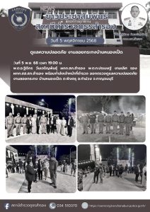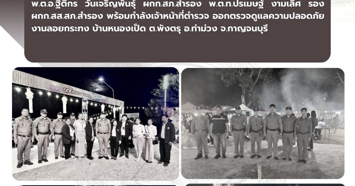 พ.ต.อ.ฐิติกร วันเจริญพันธุ์ ผกก.สภ.สำรอง พ.ต.ท.ปรเมษฐ์ งามเลิศ รอง ผกก.สส.สภ.สำรอง พร้อมกำลังเจ้าหน้าที่ตำรวจ ออกตรวจดูแลความปลอดภัย งานลอยกระทง บ้านหนองเป็ด ต.พังตรุ อ.ท่าม่วง จ.กาญจนบุรี