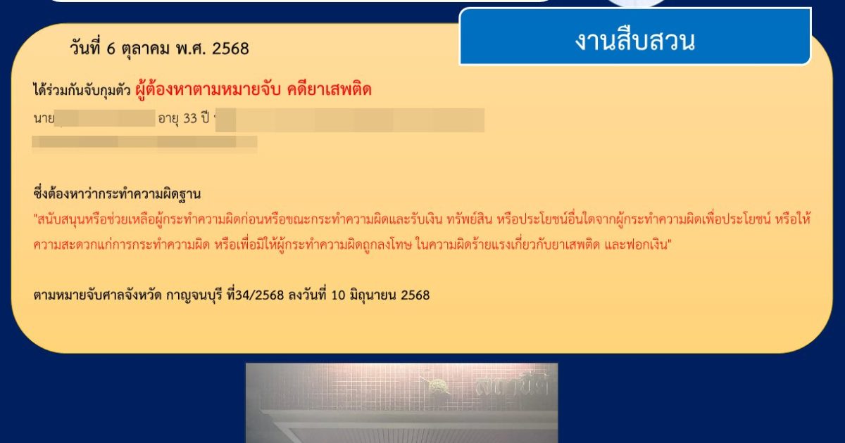 งานสืบสวน สภ.สำรอง จับกุมผู้ต้องหาตามหมายจับ คดียาเสพติด