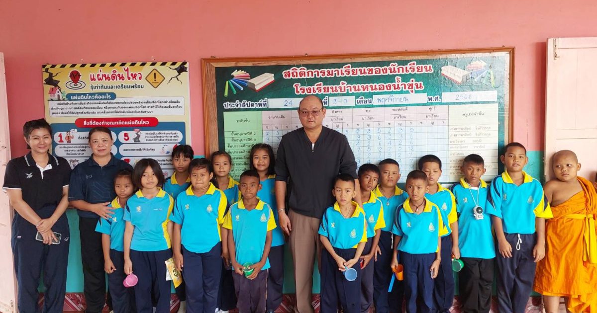 พ.ต.อ.ฐิติกร วันเจริญพันธุ์ ผกก.สภ.สำรอง ออกตรวจเยี่ยมพบปะพูดคุย คณะครูและนักเรียน โรงเรียนบ้านหนองน้ำขุ่น