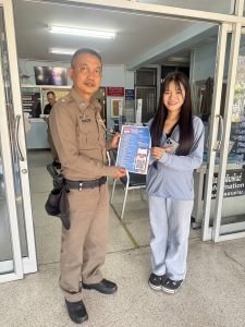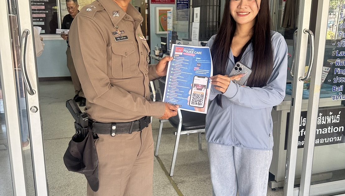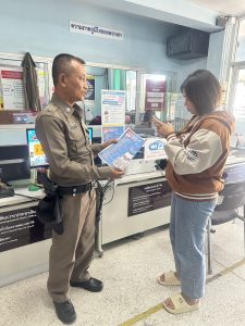 เจ้าหน้าที่ประจำวัน ประชาสัมพันธ์ แอบพลิเคชั่น Police care ให้กับประขาชนที่มาใช้บริการ สภ.สำรอง