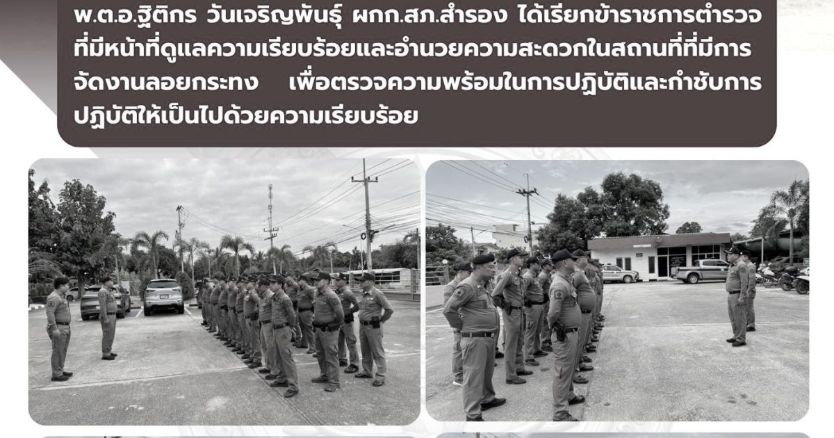 พ.ต.อ.ฐิติกร วันเจริญพันธุ์ ผกก.สภ.สำรอง ได้เรียกข้าราชการตำรวจที่มีหน้าที่ดูแลความเรียบร้อยและอำนวยความสะดวกในสถานที่ที่มีการจัดงานลอยกระทง เพื่อตรวจความพร้อมในการปฏิบัติและกำชับการปฏิบัติให้เป็นไปด้วยความเรียบร้อย