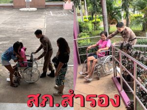 ส.ต.ท.คชา คชสิทธิ์ ผบ.(ป.)สภ.สำรอง ปฏิบัติหน้าที่สิบเวรประจำสถานี ได้อำนวยความสะดวกผู้มาติดต่อราชการซึ่งเดินไม่สะดวกเนื่องจากอุบัติเหตุการจราจรโดยได้ให้นั่งรถเข็นที่ สภ.สำรอง ได้จัดเตรียมไว้
