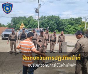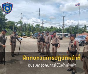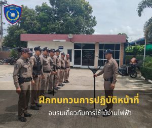 ได้เรียกแถวสายตรวจฝึกทบทวนการปฎิบัติหน้าที่ อบรมเกี่ยวกับการใช้ไม้ง่ามไฟฟ้า