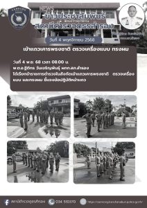 ได้เรียกข้าราชการตำรวจในสังกัดเข้าเเถวเคารพธงชาติ ตรวจเครื่องแบบ และทรงผม ชี้เเจงข้อปฎิบัติหน้าเเถว