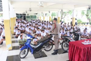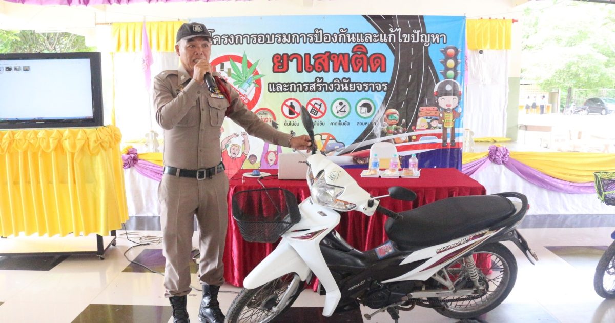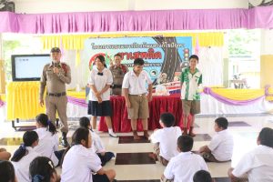 ร่วมกันออกให้ความรู้ เรื่องยาเสพติด และเรื่องกฎระเบียบจราจร แก่นักเรียน โรงเรียนหนองตากยาตั้งวิริยะราษบำรุง ต.หนองตากยา