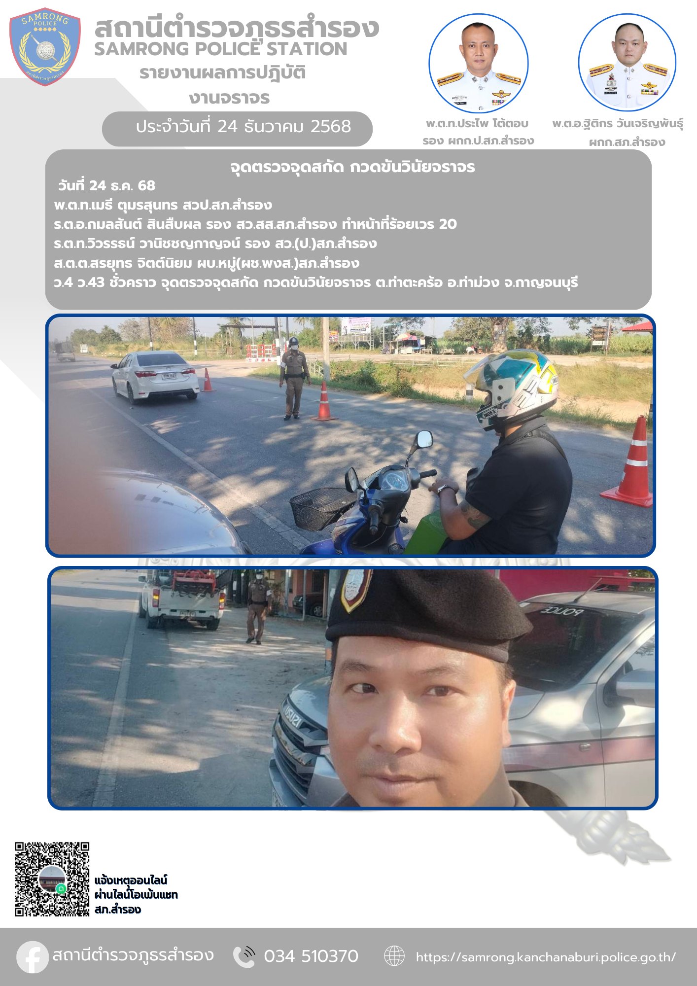 จุดตรวจจุดสกัด กวดขันวินัยจราจรวันที่ 24 ธ.ค. 68พ.ต.ท.เมธี ตุมรสุนทร สวป.สภ.สำรองร.ต.อ.กมลสันต์ สินส