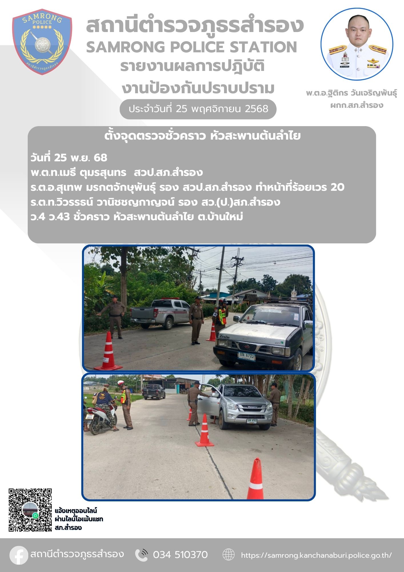 สภ.สำรองขอขอบคุณ วันที่ 26 พ.ย. 68 เวลาประมาณ 13.30 น. พ.ต.ท.เมธี ตุมรสุนทร สวป.สภ.สำรอง, ร.ต.อ.กมลส