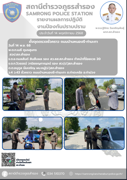 วันที่ 17 พ.ย. 68 พ.ต.ท.เมธี ตุมรสุนทร สวป.สภ.สำรอง พร้อมด้วย 20รถยนต์ สายตรวจรถจักรยานยนต์ สายตรวจท
