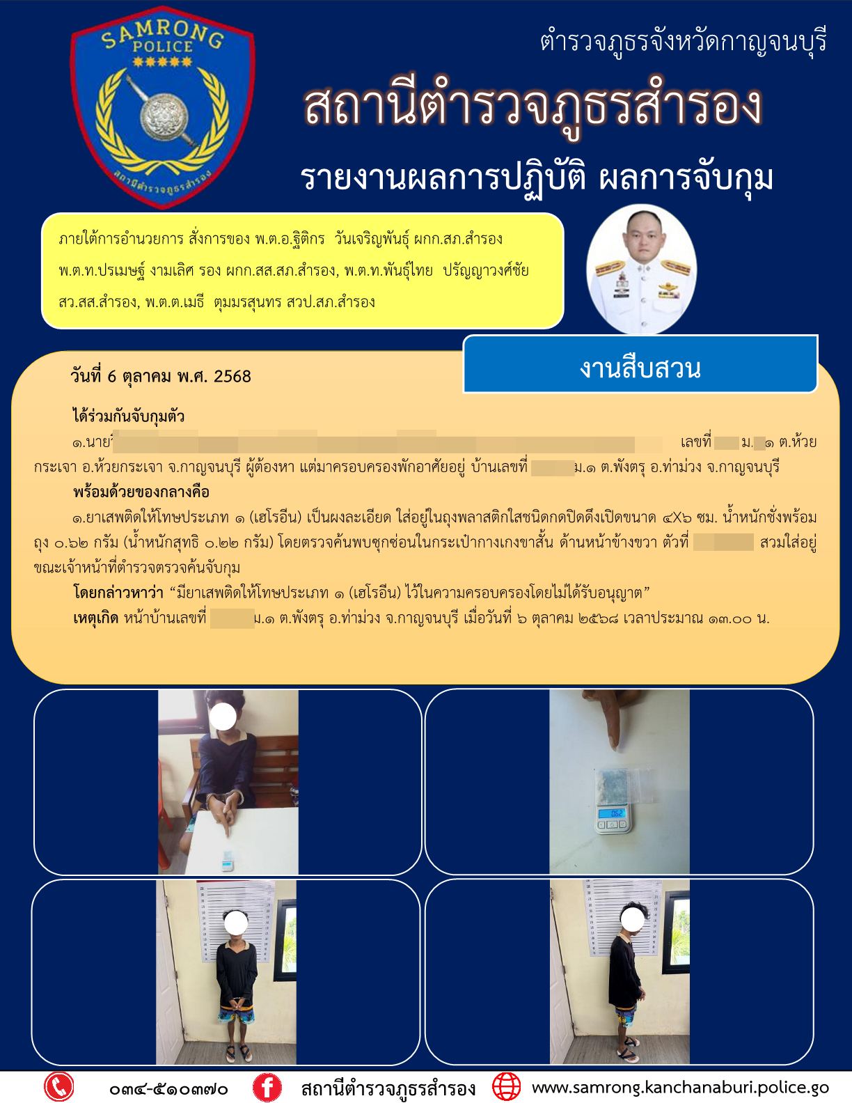 วันที่ 6 ต.ค. 68 ชุดสืบสวน สภ.สำรอง ร่วมกับงานป้องกันปราบปราม สภ.สำรอง ร่วมกันจับกุมครอบครองยาเสพติด
