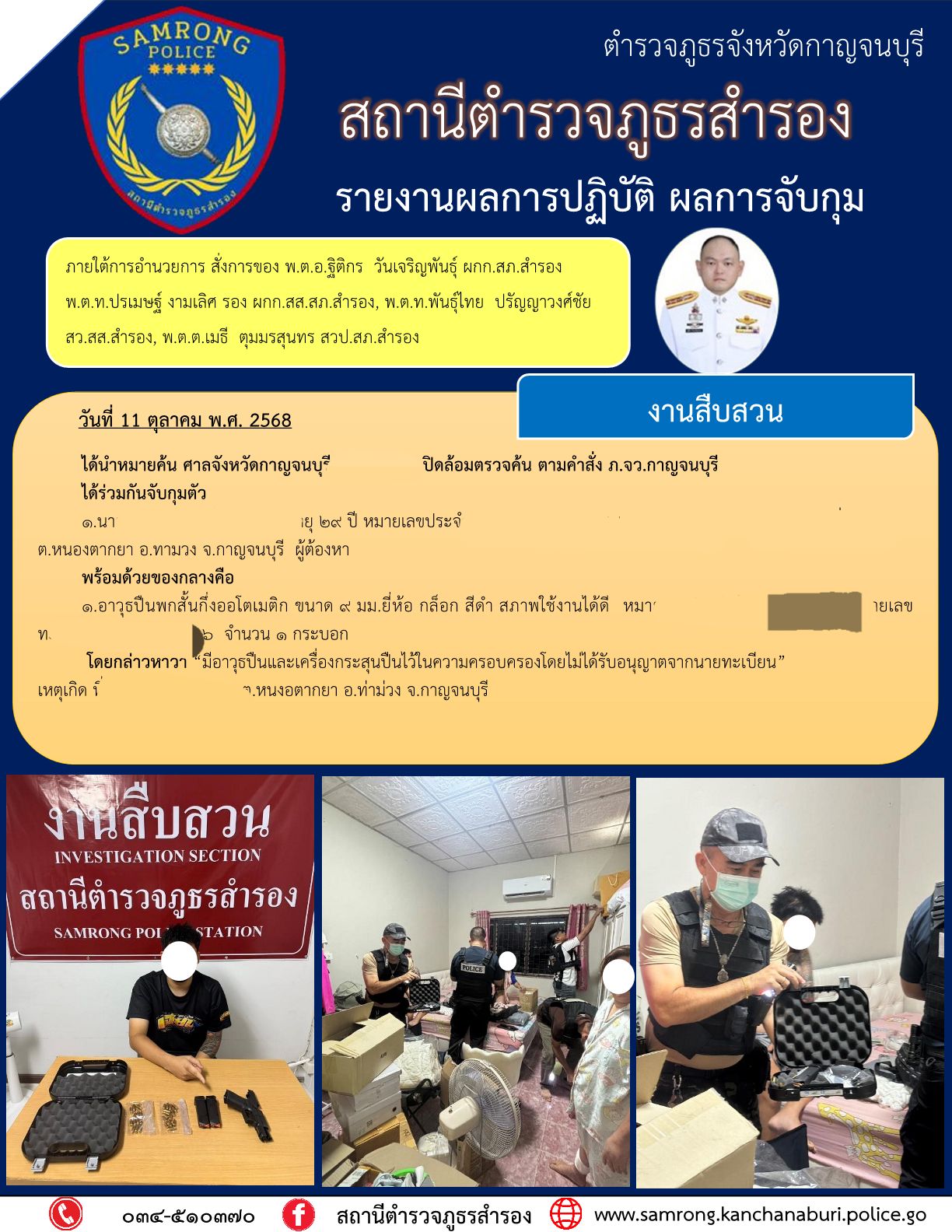 สภ.สำรอง/จับกุม อาวุธปืน 1 ราย 1 คนวันที่ 11 ต.ค. 68 เวลาประมาณ 07.00 น.ตำรวจชุดสืบสวน สภ.สำรอง ร่วม