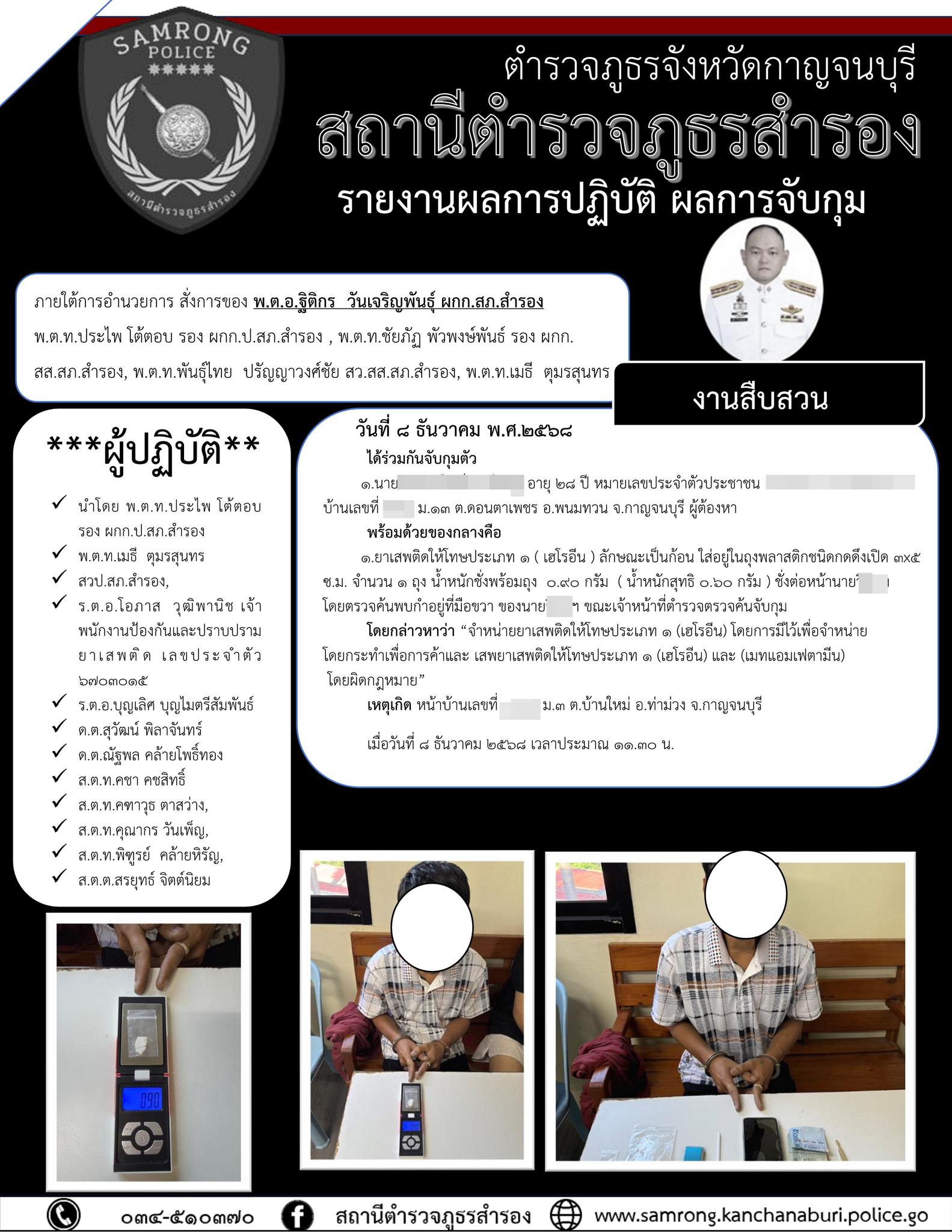 8 ธ.ค. 68 ชุดสืบสวน สภ.สำรอง จับกุมยาเสพติด 4 ราย