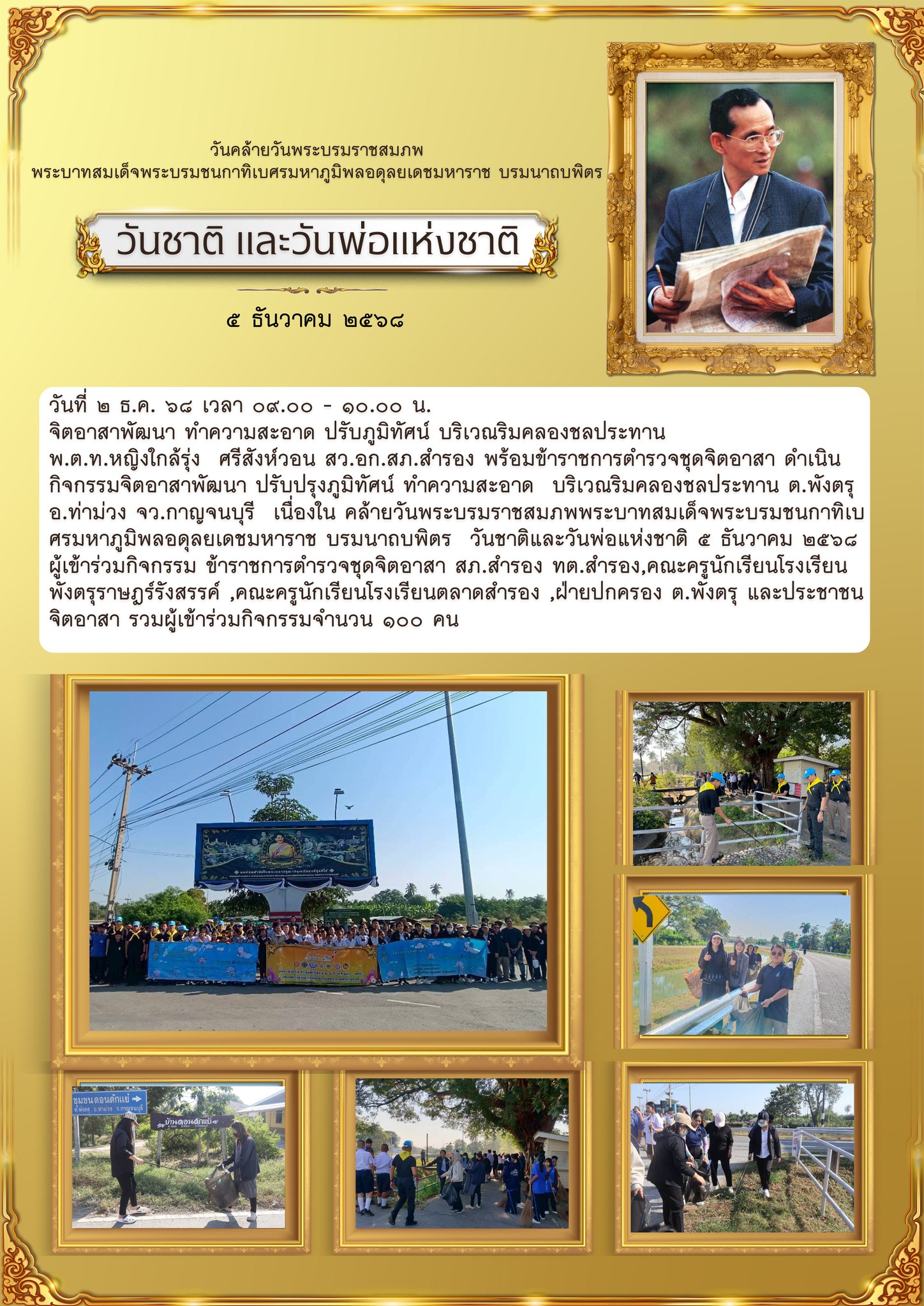 วันที่ ๒ ธ.ค. ๖๘ เวลา ๐๙.๐๐ – ๑๐.๐๐ น.จิตอาสาพัฒนา ทำความสะอาด ปรับภูมิทัศน์ บริเวณริมคลองชลปร