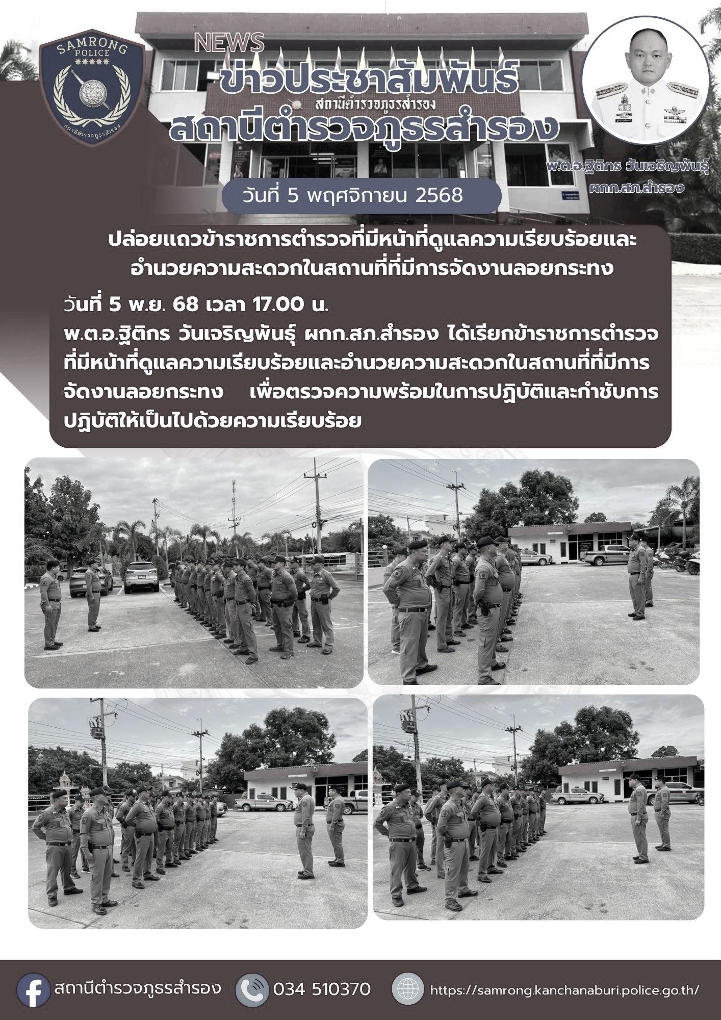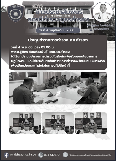 วันนี้ 5 พ.ย 68 เวลา 17.00 น.พ.ต.อ.ฐิติกร วันเจริญพันธุ์ ผกก.สภ.สำรอง ได้เรียกข้าราชการตำรวจที่มีหน้