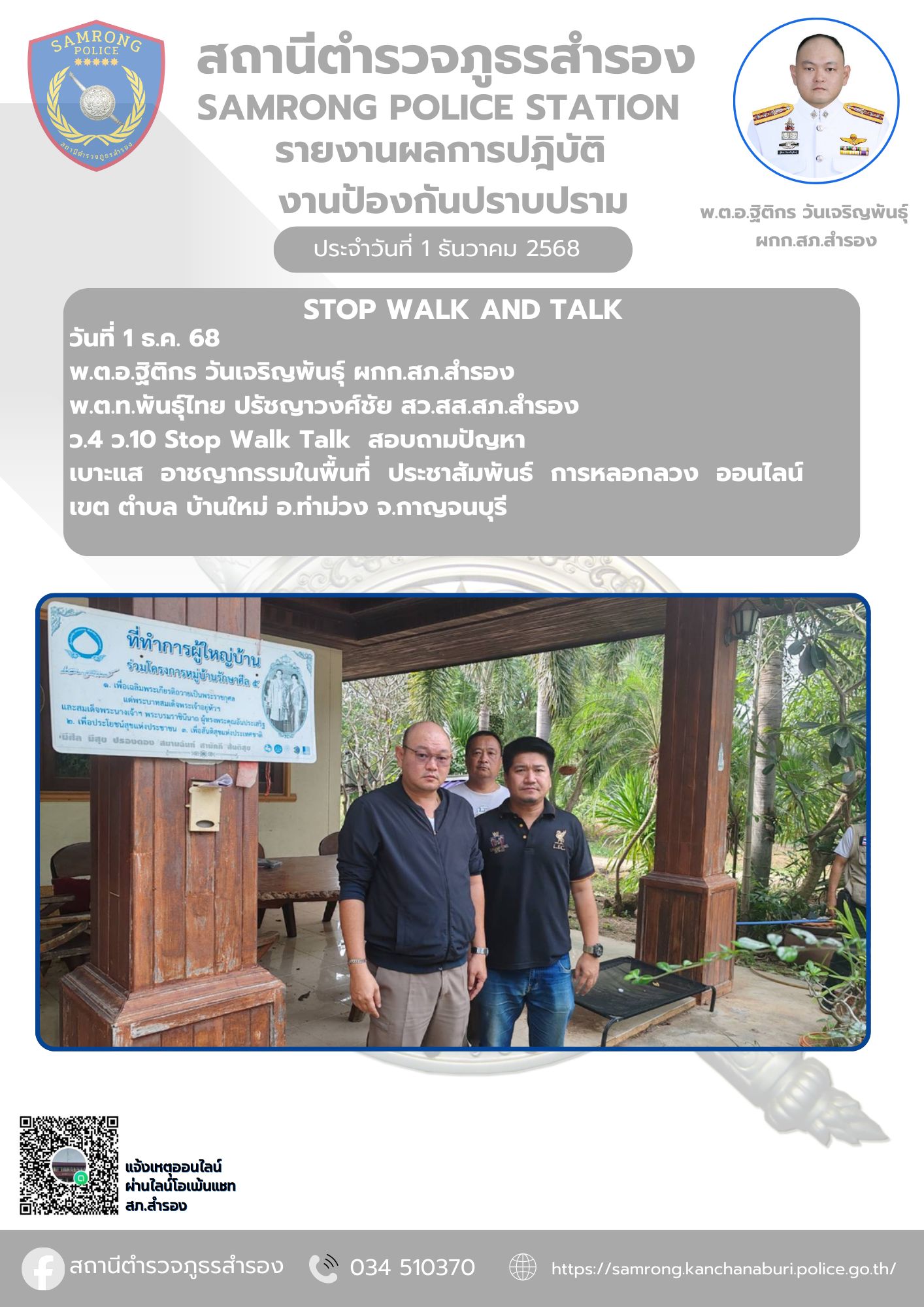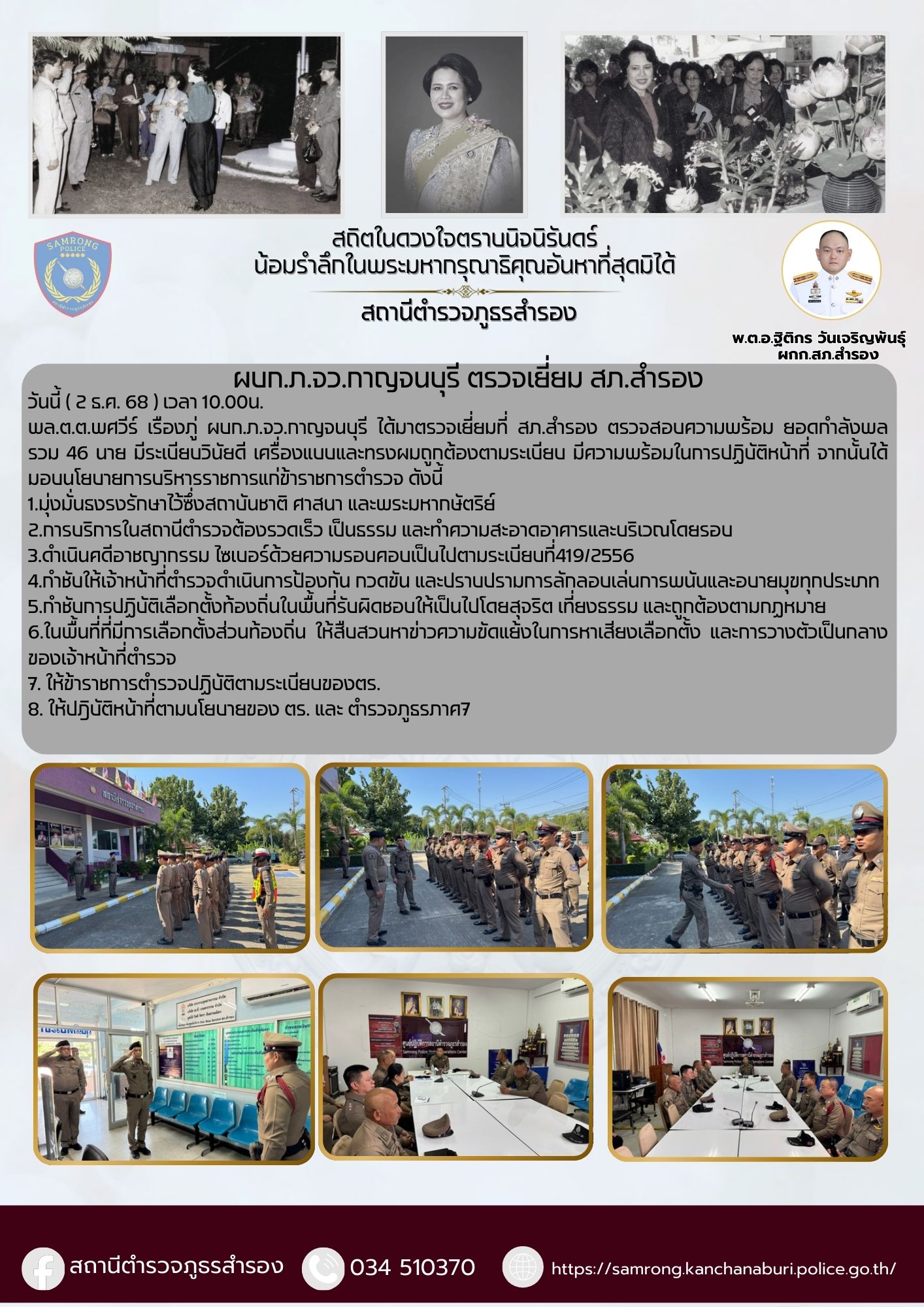 วันนี้ ( 2 ธ.ค. 68 ) เวลา 10.00น.พล.ต.ต.พศวีร์ เรืองภู่ ผบก.ภ.จว.กาญจนบุรี ได้มาตรวจเยี่ยมที่ สภ.สำร