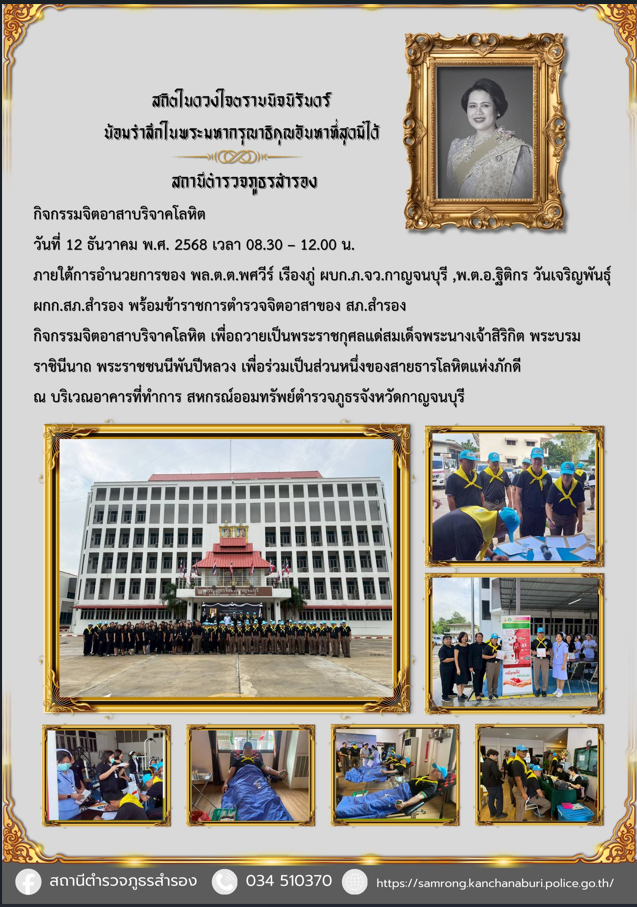 กิจกรรมจิตอาสาบริจาคโลหิตวันที่ 12 ธันวาคม พ.ศ. 2568 เวลา 08.30 – 12.00 น.ภายใต้การอำนวยการของ พล.ต.