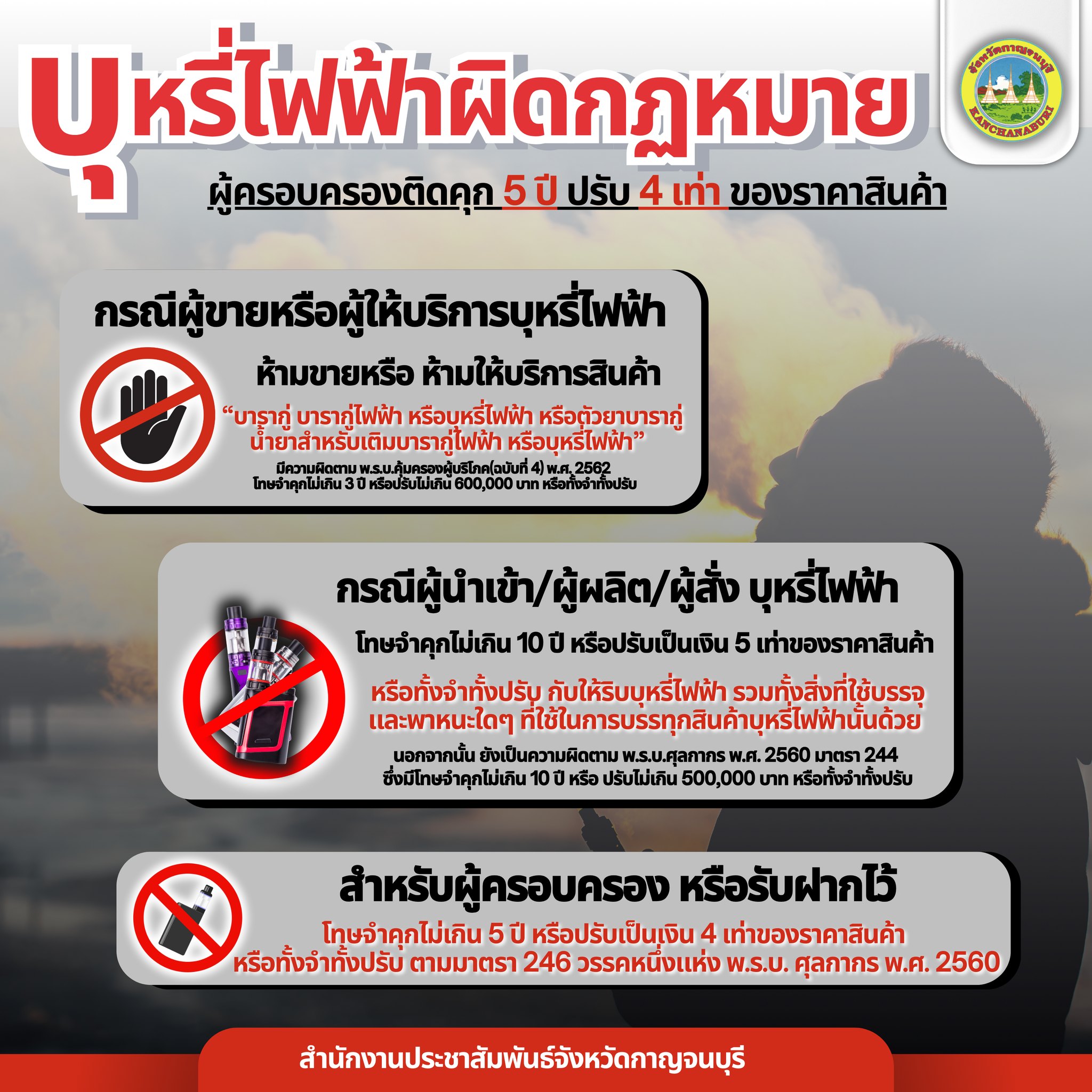 ‘บุหรี่ไฟฟ้า’ ผิดกฎหมาย ผู้ครอบครองติดคุก 5 ปี ปรับ 4 เท่าของราคาสินค้านายอนุกูล พฤกษานุศักดิ์ รองโ