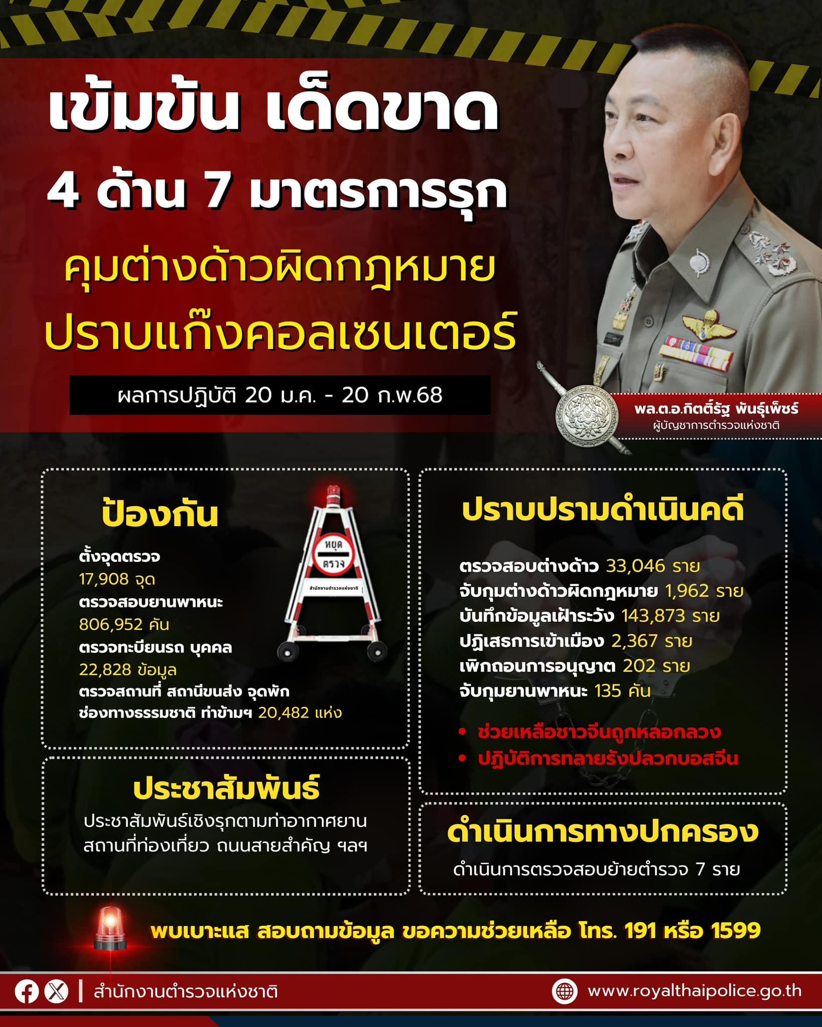 เข้มข้น เด็ดขาด พล.ต.อ.กิตติ์รัฐ พันธุ์เพ็ชร์ ผู้บัญชาการตำรวจแห่งชาติ ( ผบ.ตร. ) สั่งการตำรวจทุกหน่