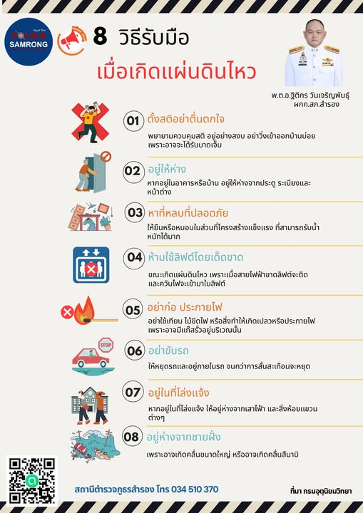 สภ.สำรอง ประชาสัมพันธ์ 8 วิธีรับมือ เมื่อเกิดเเผ่นดินไหว