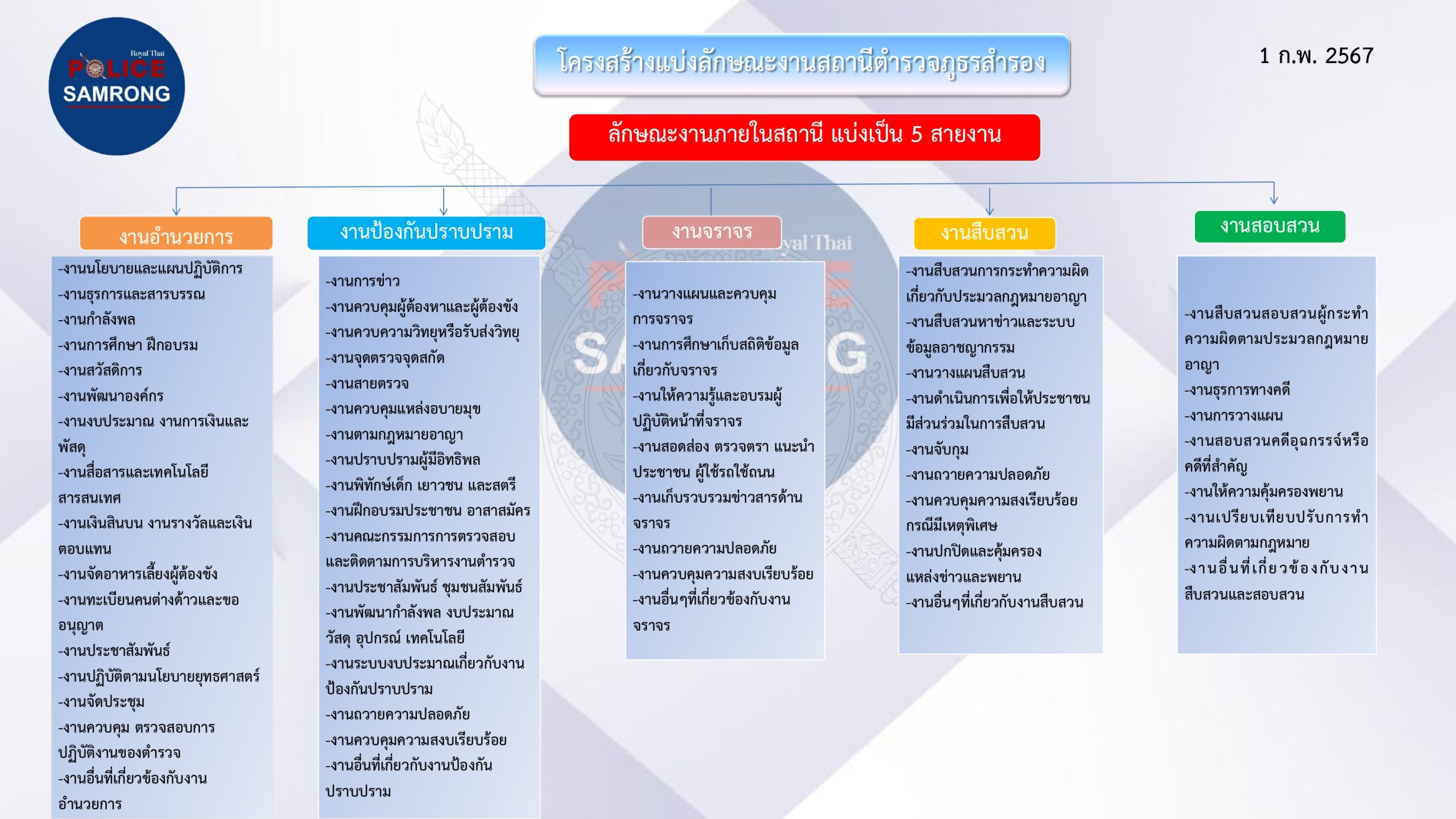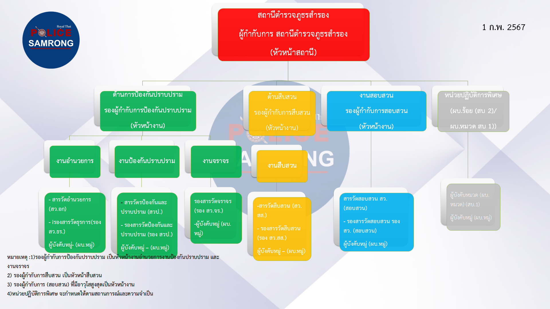 แผนผังโครงสร้างการแบ่งส่วนราชการของสถานีตำรวจ