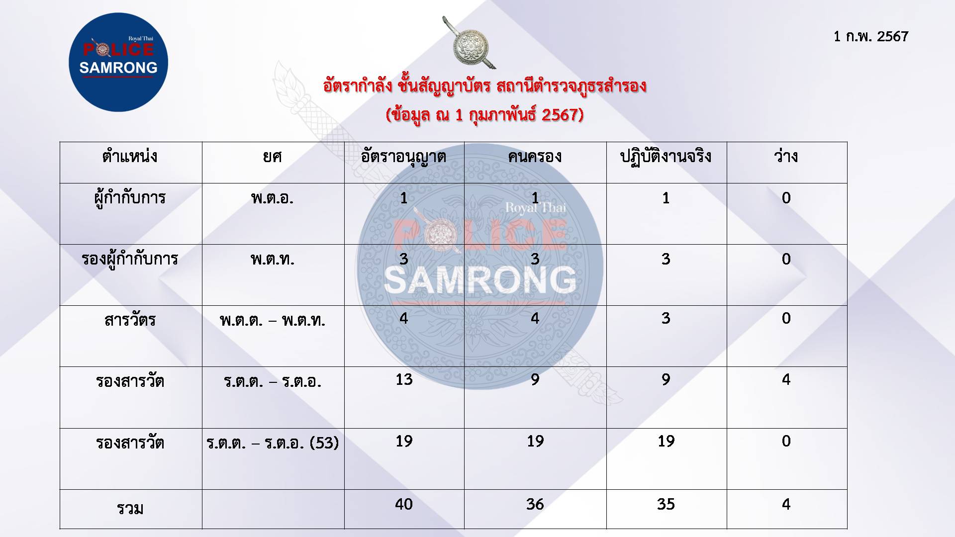 อัตรากำลังของสถานี