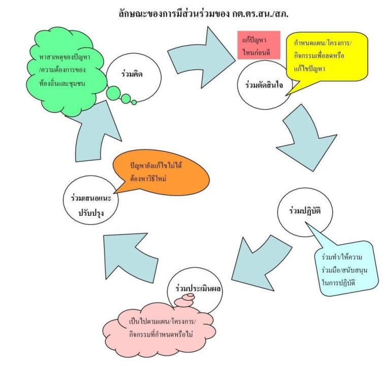 1) มีส่วนร่วมในการคิด ศึกษาและค้นคว้าหาสภาพและสาเหตุของปัญหาตลอดจนความต้องการของท้องถิ่นและชุมชน