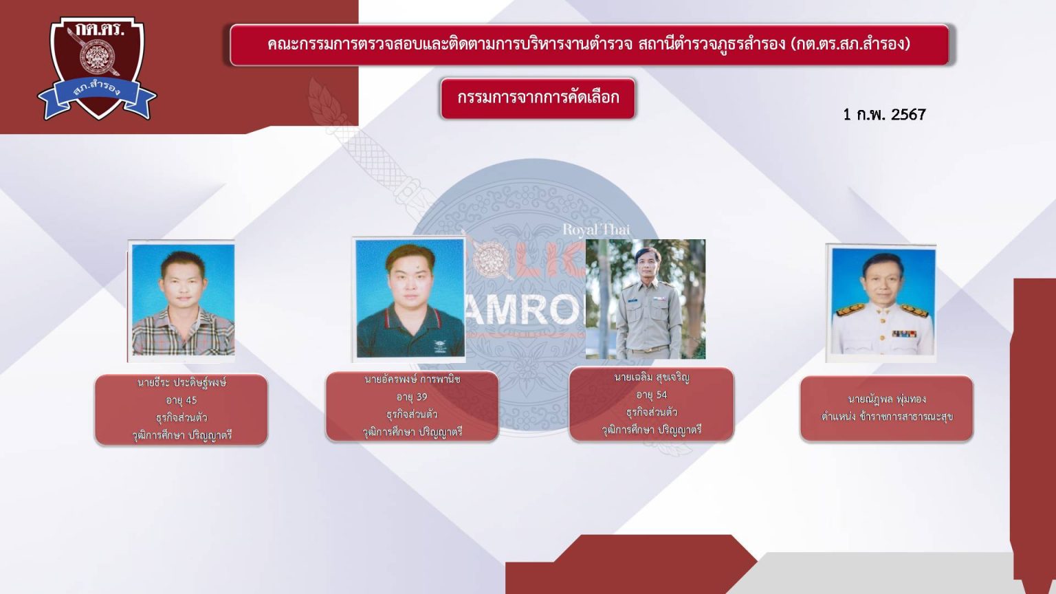 คณะกรรมการตรวจสอบและติดตามการบริหารงานตำรวจ (กต.ตร. ) ของ สภ.สำรอง