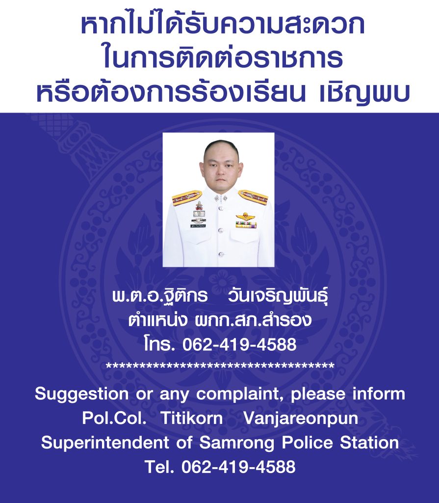 ช่องทางแจ้งเรื่องร้องเรียนการทุจริตของสถานีตำรวจภูธรสำรอง